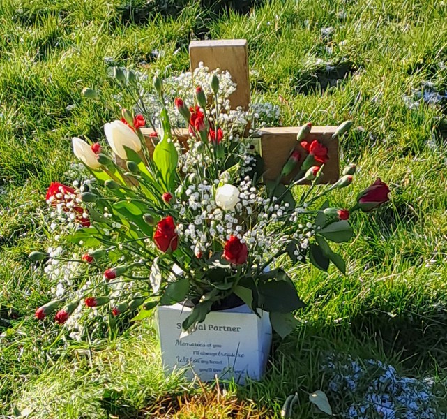 Grave all tidy again, wreaths removed and fresh flowers for you and your Parents.