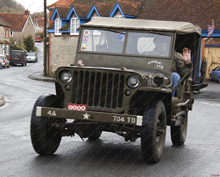 Arthur Smith photographed with his Willys Jeep, is a local man from Heytesbury. This is a genuine WW2 Willys Jeep.
