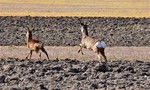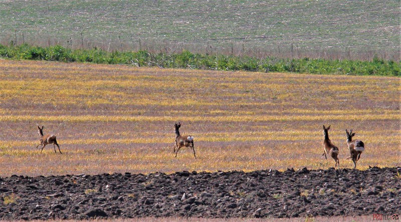 There are several wind turbines and on the south side of the road is the communication tower.