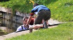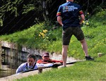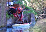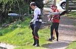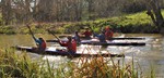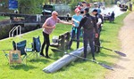 These photographs, taken on the Kennet & Avon canal at Wilcot, about ten miles from the start, show one of the crews becoming unseated at Wilcot Bridge. In