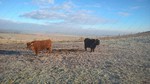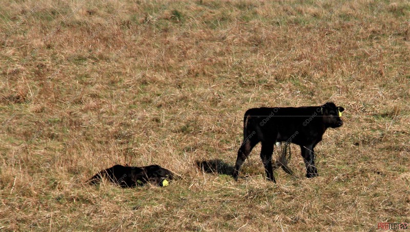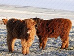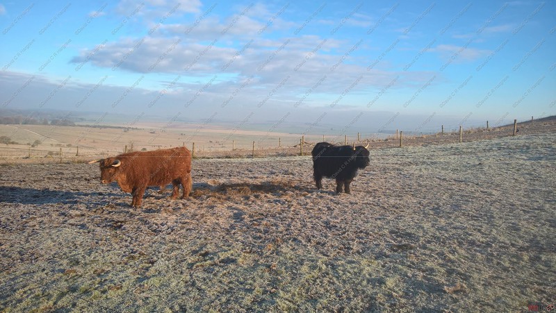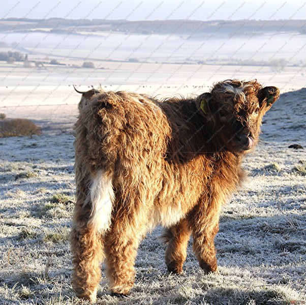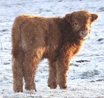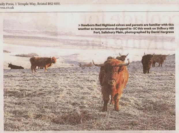 These photographs were taken today at 08:00 on Sidbury Hill Fort, Salisbury Plain with temperatures this morning of -5. These are new born Red Highland Calves and