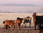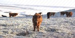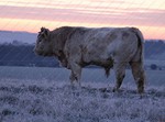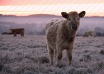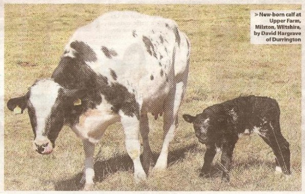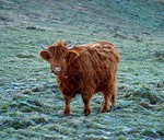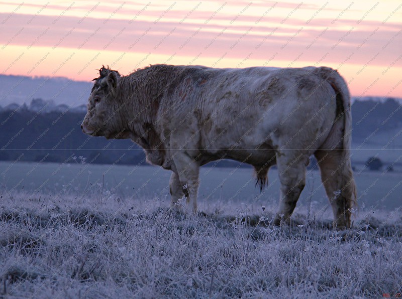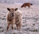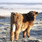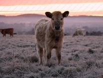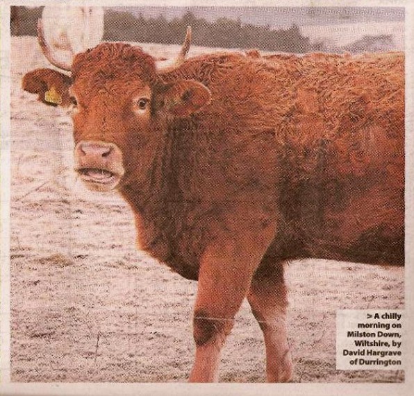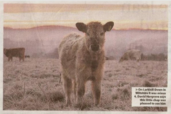 I was on Larkhill Down at 07:45 this morning at -4 just before sunrise. This little calf was pleased to see me.
