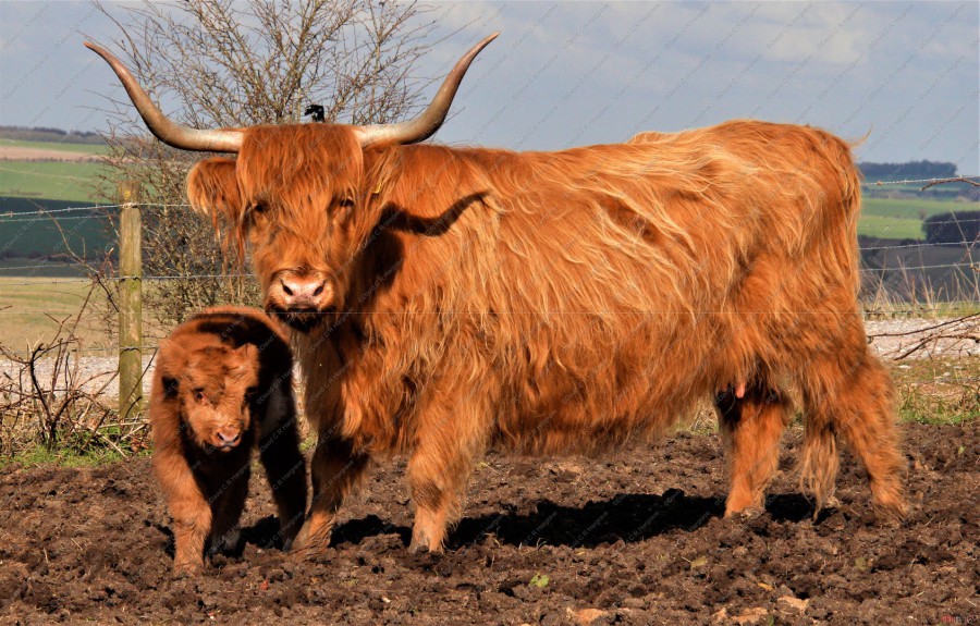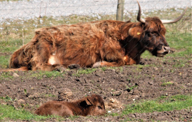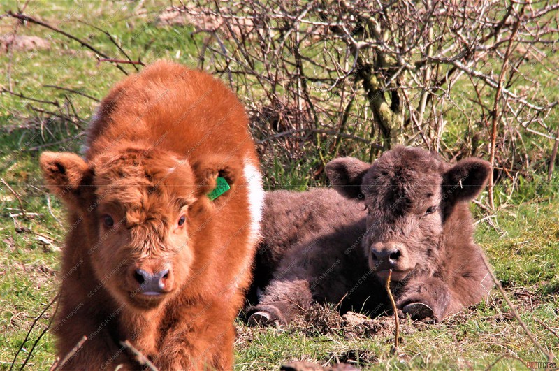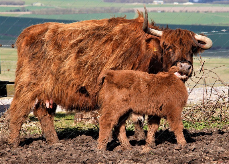 These photographs were taken on Salisbury Plain showing new born Highland Cattle calves, most just two days old and some are even younger.