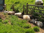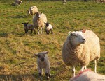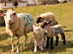 distinctive ewe with her lamb, which I have since found out is a Kerry Hill ewe. She is the one with black eyes and knees!!
