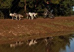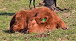 The calves are less than a day old. They can be already seen running around, altough a little wobbly but very inquisitive.