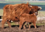 Red Highland Calves with Parents - 21.01.20