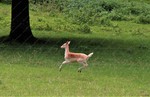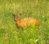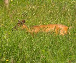This youngster was asleep in the long grass on the Plain, in an area that was about to be mown for hay. Not quite sure who was the most startled the deer or