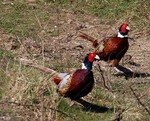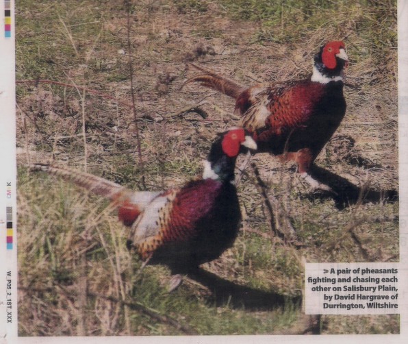 These male pheasants are totally oblivious to me sat watching them, they were so busy fighting and chasing each other to set up a harem and territory.