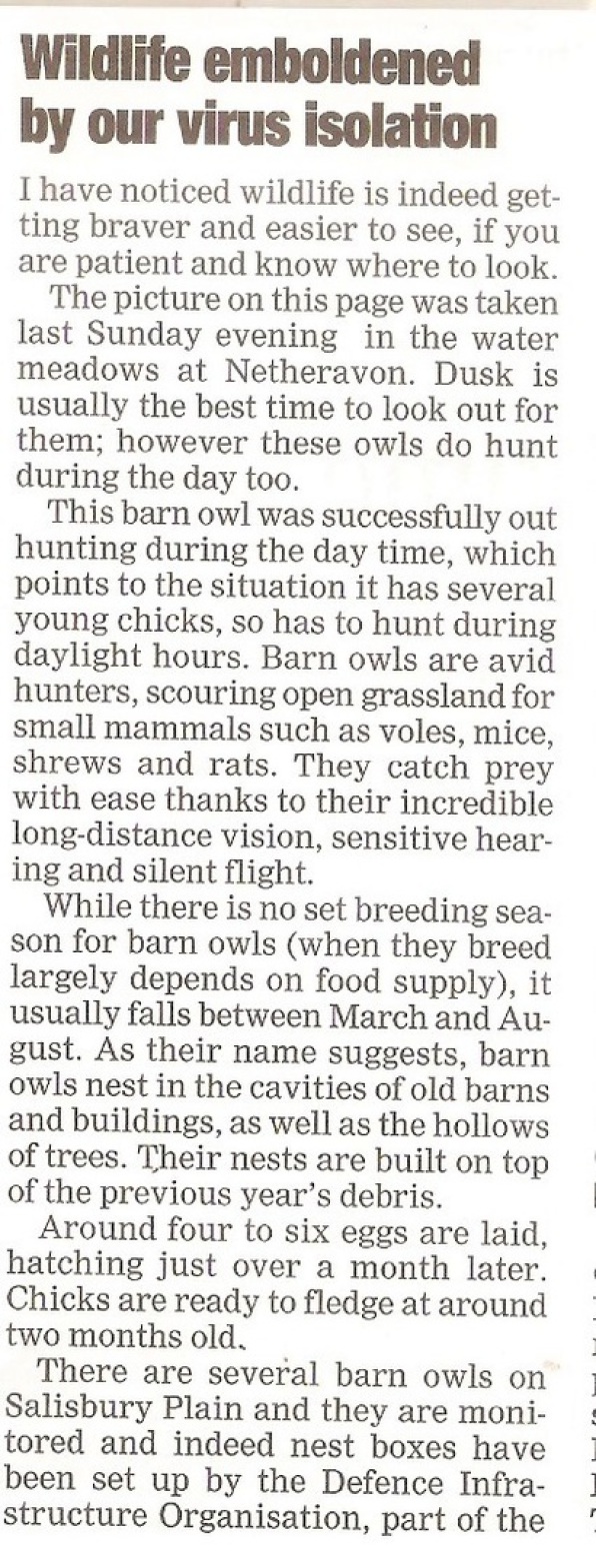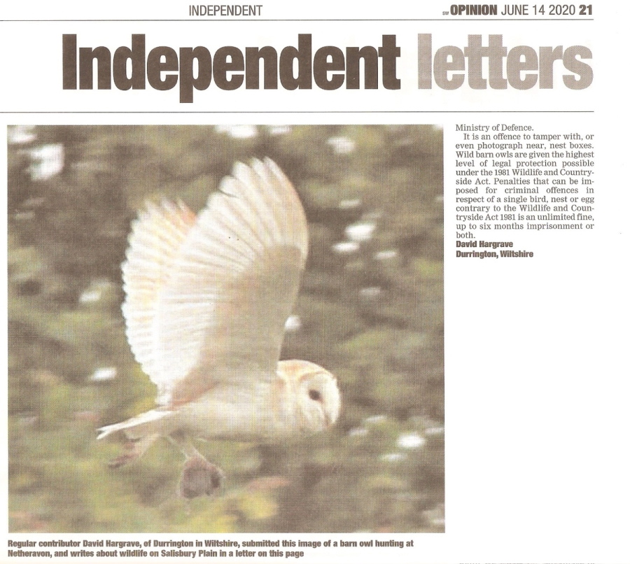 There are several Barn Owls on the Plain and they are monitored and indeed nest boxes etc have been set up by the DIO, part of the MOD.