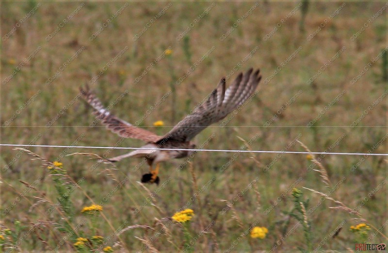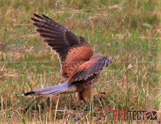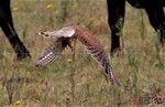 When suitable prey is in sight, the Kestrel drops vertically towards the ground, swooping to grab its prey in its talons and killing it with a swift bite.