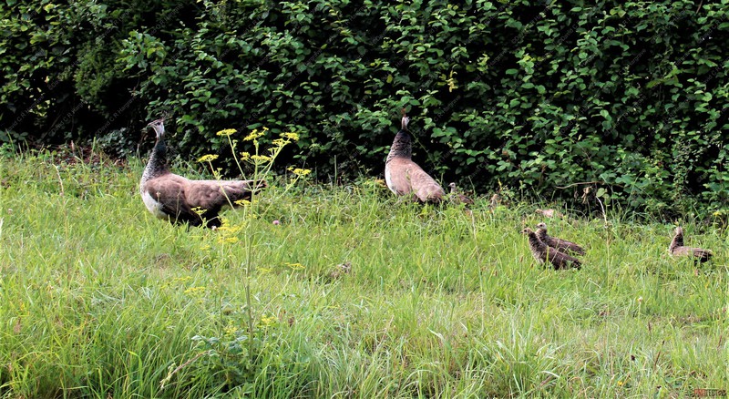 Peahens spend most of their time in close proximity to their babies and will aggressively protect them from predators.