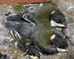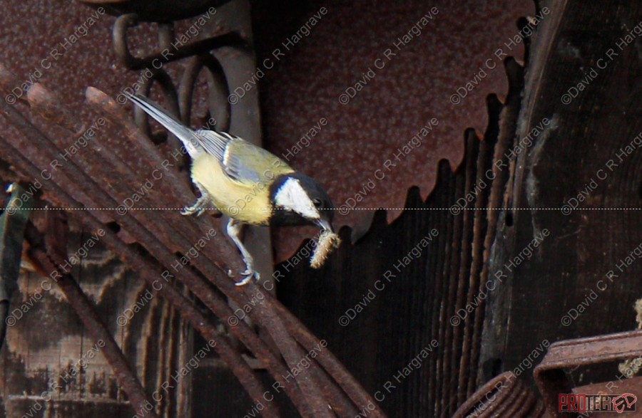 The photographs were taken of these Great Tit Parents and their chicks, which are nearly ready to fly from the nest (an old Flower pot hanging on a shed).