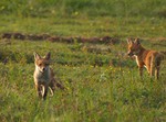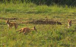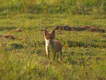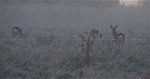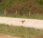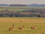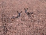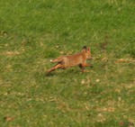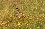 grass; when disturbed, they can be seen bounding across the fields, using their powerful hind legs to propel them forwards, often in a zigzag pattern.