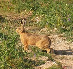 The brown hare is known for its long, black-tipped ears and fast running - it can reach speeds of 45mph when evading predators. It prefers a mosaic of farmland and