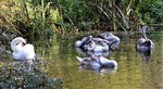 These youngsters are at the stage, where their plumage is showing quite well and they are busy preening to remove the last of the down.