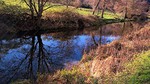 A small stream bubbles over stones and under small bridges, and there is a large, fish filled pond with a moorhen house. There are many benches dotted around for you to
