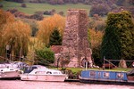 This structure is the elaborately decorated chimney beside the towpath at Lock 11. This is all that remains of the former pumping station.