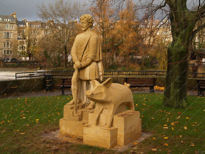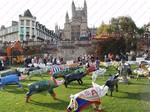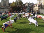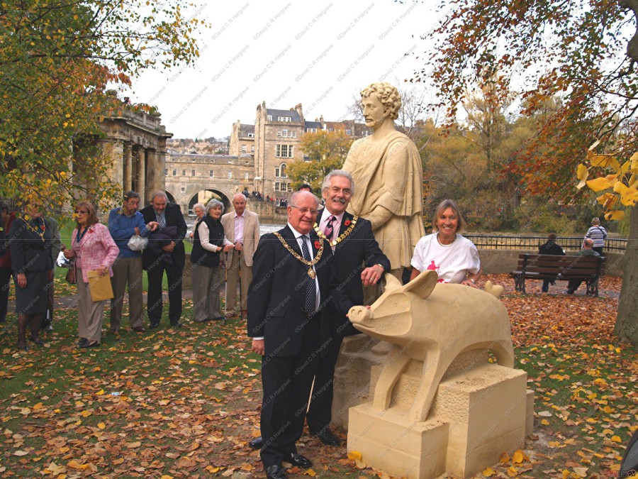 One hundred fibreglass pigs, individually painted and named, were scattered around Bath to commemorate King Bladud, who is said to have founded the city in 863 BC. They were then displayed together for the last time before being sold at auction with a reserve price of £1,250 each.