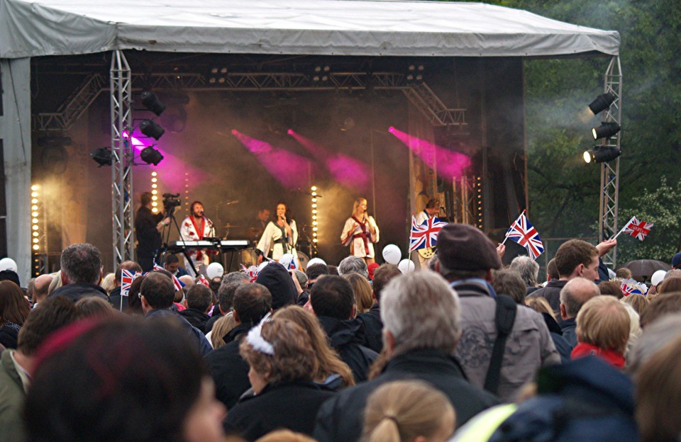 Bath celebrated the Jubilee on the 5th June in Royal Victoria Park with a free 'Picnic in the Park' event. Two giant screens displayed the Jubilee celebrations and a large stage hosted performances from the Bath Philharmonic Orchestra, young emerging pop artists and the popular ABBA tribute band Bjorn Again. Party goers were encouraged to dress up in retro clothes from 1977 when the Queen celebrated her Silver Jubilee.