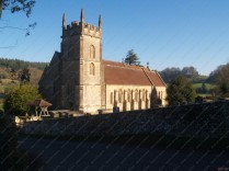It has a low west tower, a long nave, chancel and south transept, presumably for a family pew. A few small fragments remain from the Norman church and there were