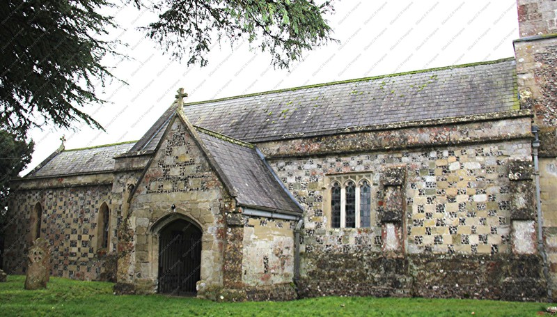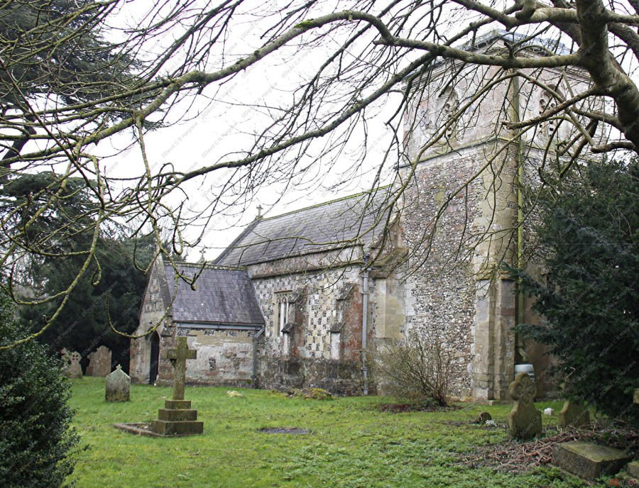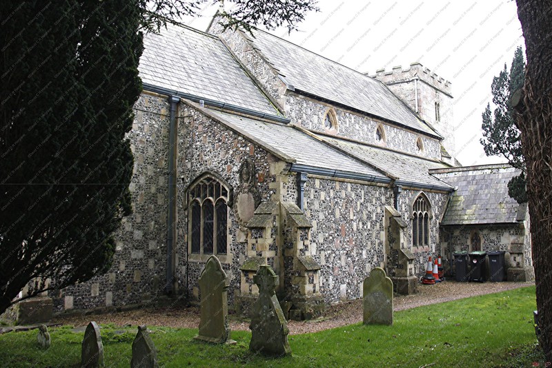 In 1853 the chancel was rebuilt and the whole church restored by T H Wyatt. Both nave and chancel walls are faced with flint and sandstone chequerwork.