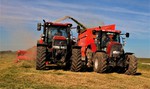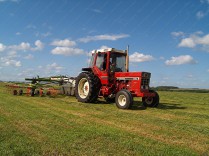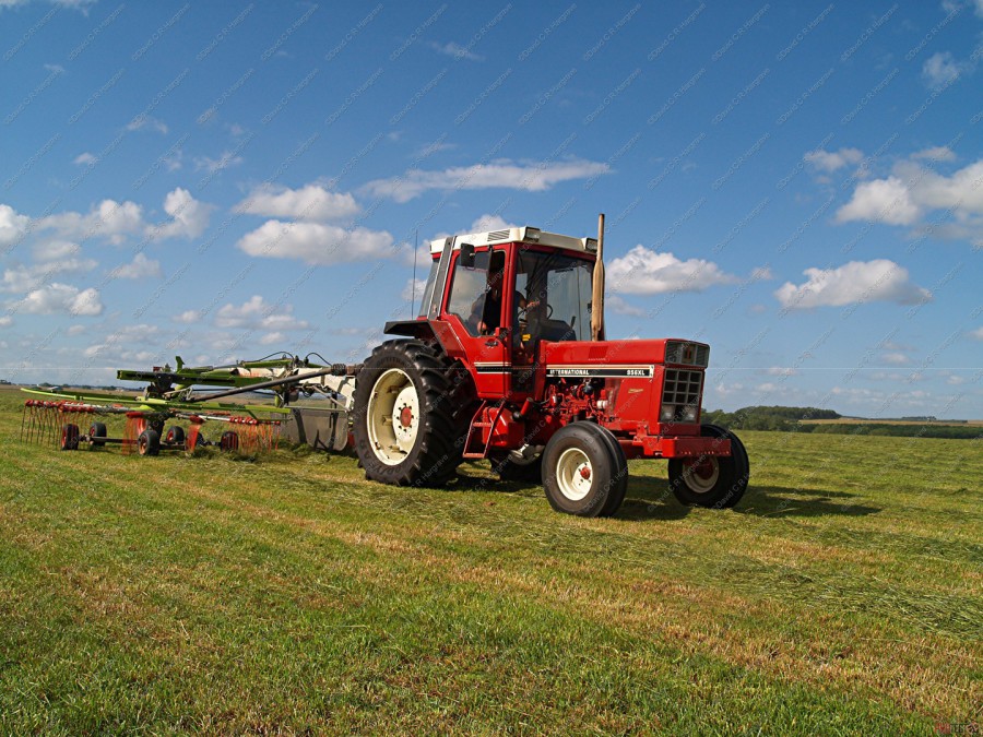 The International 956XL tractor is quite capable of towing the Conventional Pick up Baler and Sledge.