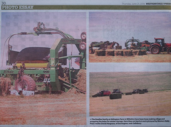 The Parsons Family have the Rawlins Family helping to harvest some grass for silage at Upper Farm Milston. The farm grows a lot of grass for silage and hay to feed their animals through the winter months.