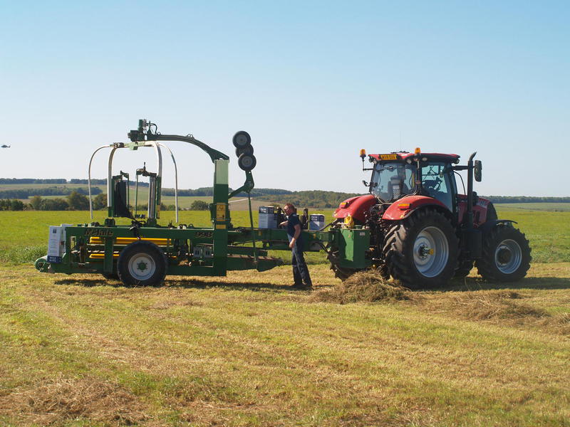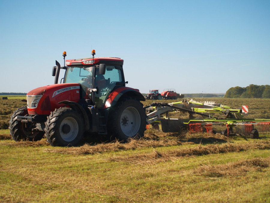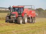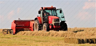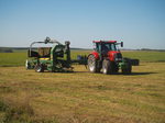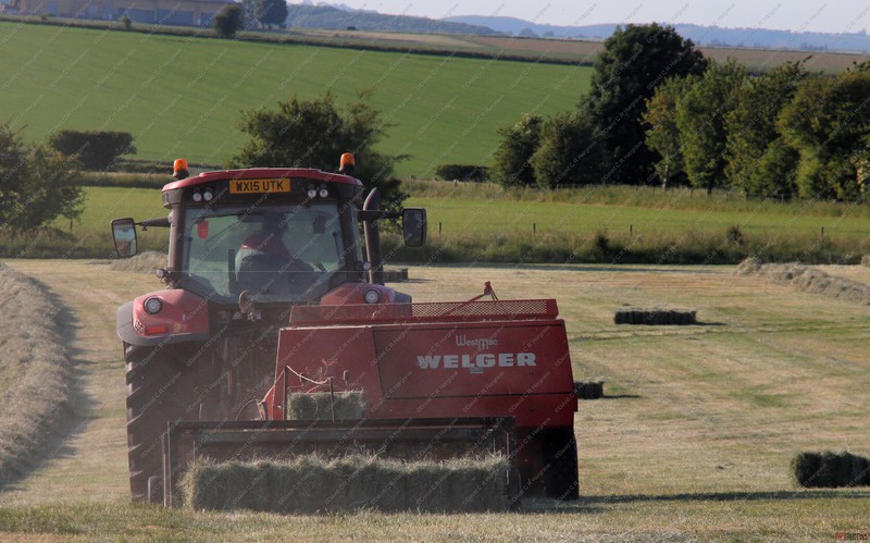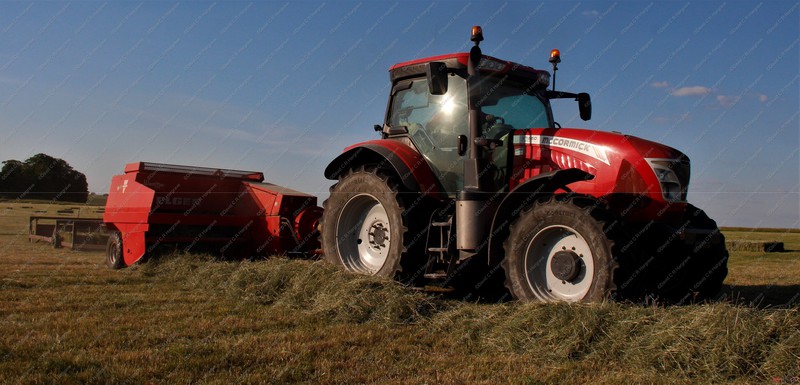 This photograph shows Stan Rawlins from Ablington Farm out this evenig in the McCormick X7.660 tractor, towing the Conventional Pick up Baler and Sledge.