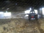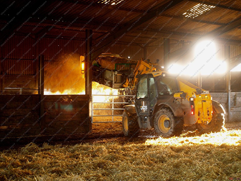 Rob Rawlins is seen here spreading new straw bedding into the pens, where the young cattle will be for the winter months. This is now carried out using a straw