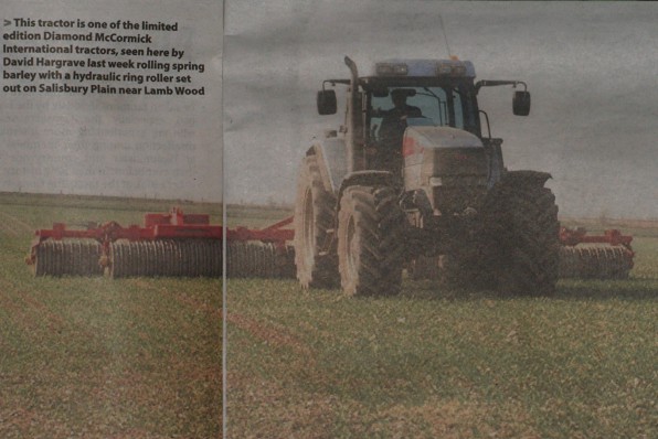 George is shown here with a one pass tine and disc roller cultivator preparing the plot for drilling. This is of course a lot quicker and saves on labour, time and