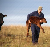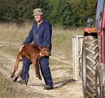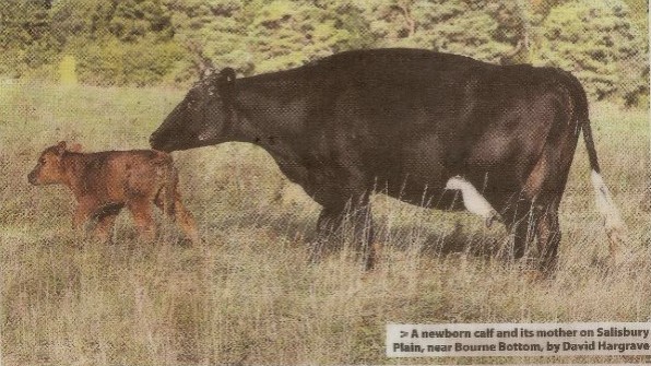 These photographs were taken this morning on Salisbury Plain near Bourne Bottom and show a new born calf being being transported back to the farm via tractor with a
