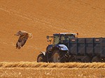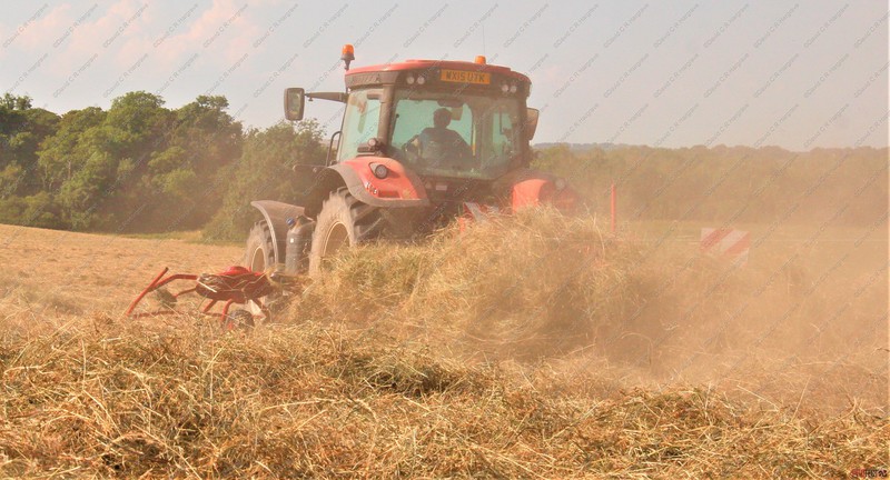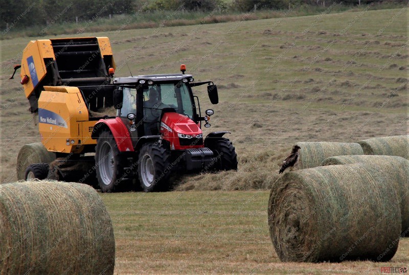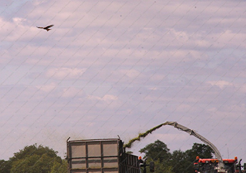 While they were clearing this field there were six red kites patrolling low above the field, after a free meal of mice and shrews etc, following the machinery.