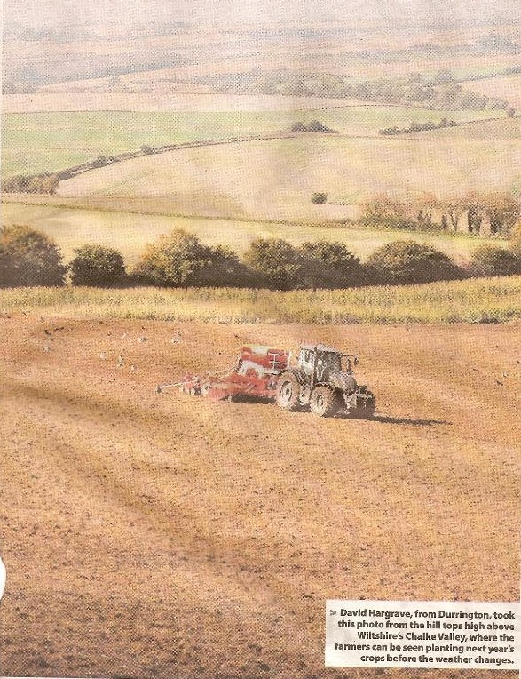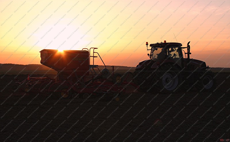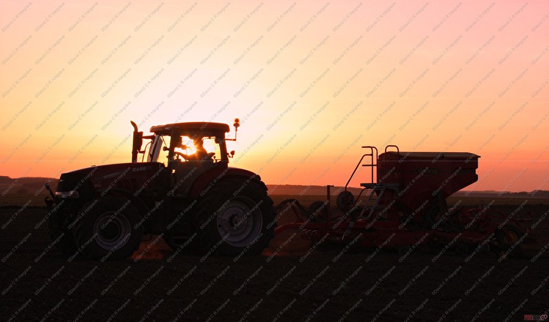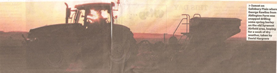 These photographs show George Rawlins drilling some spring barley, tonight as the sun set, on the old Syrencot Airfield area, Salisbury Plain.