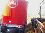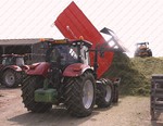 which can take a whole large bale and chop it and blow into the covered yard in minutes.