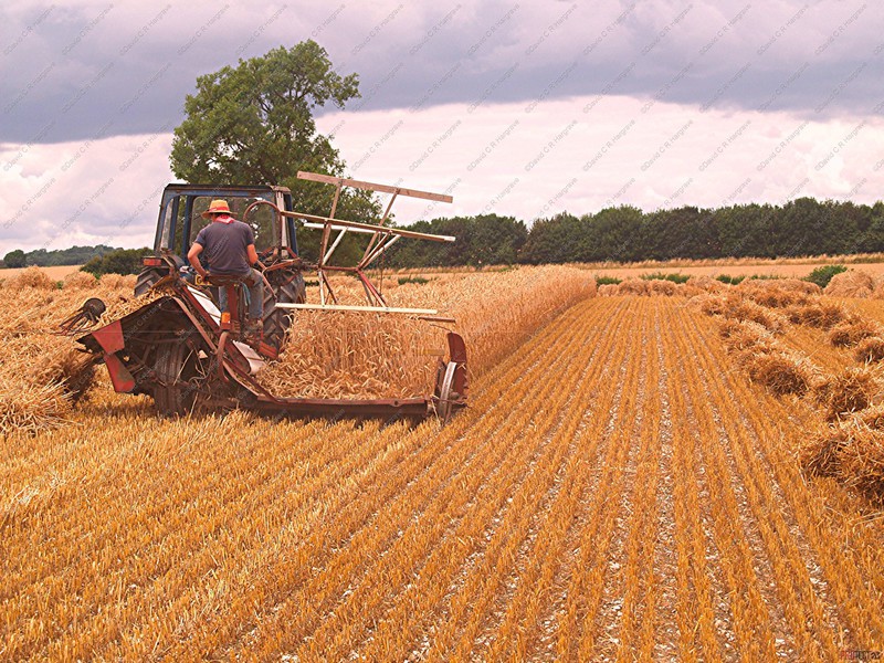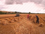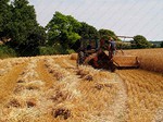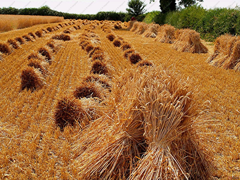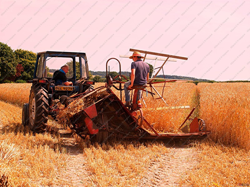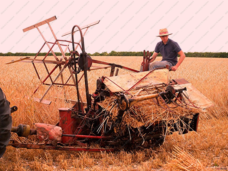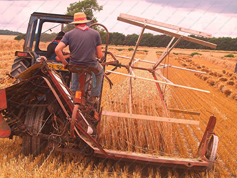 Crops are cut, traditionally, with a binder, when the nodes are still green and the grain is of a cheesy texture, this ensures that the straw is frozen in its prime, thus