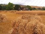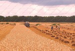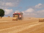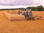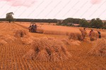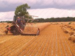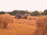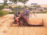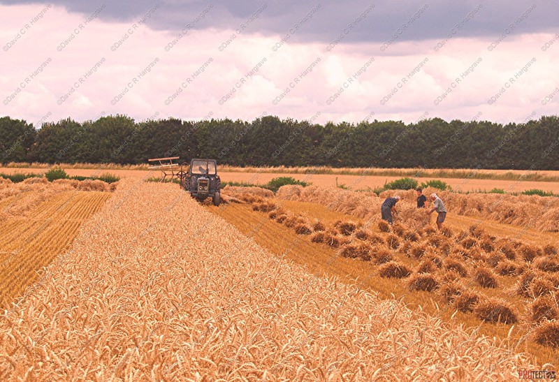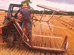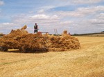 stack to condition, before the reed comber threshes out the grain and removes the leaf and flag from the stems. The bundles are tied in the trusser and are then ready for the thatcher to put on