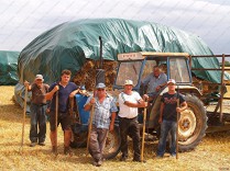 I was on site today to record the completion of the hay rick building. I have spent quite a lot of time with these people, who turned the field of standing corn into the ricks, just how it used to be.