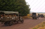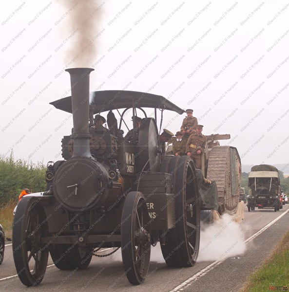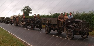 The convoy comprised of WW1 vehicles and steam engines from the time, accompanied by full crew in period dress.