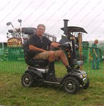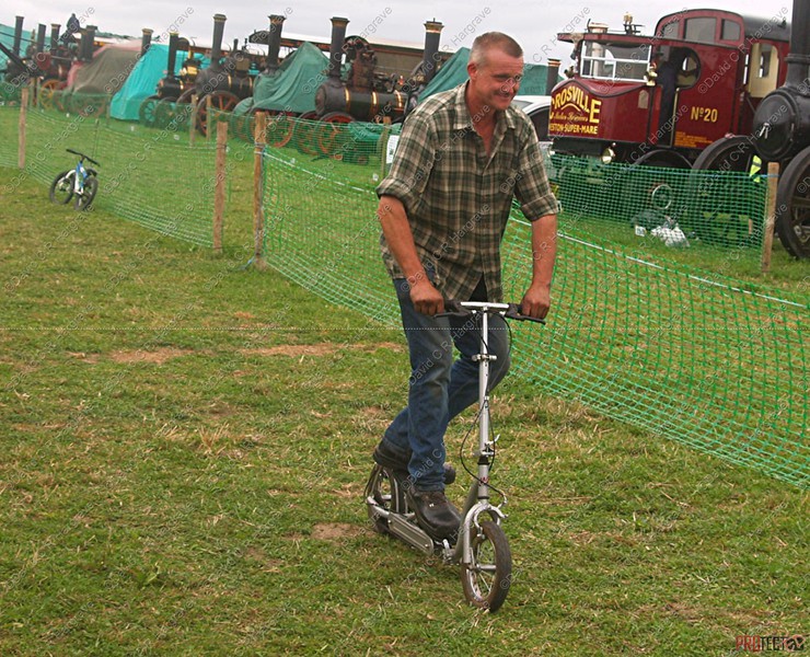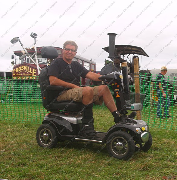 Despite breaking an ankle in Cornwall earlier this year, engine owner John White is not going to be left out of the mobility gang. Love the chimney the boys have