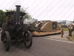 Steam engines, steam lorries, military vehicles and other exhibits arriving on site.