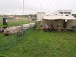 We have the water, Brian Snelgar has brought the lighting wood. Despite a heavy shower the field engineer has tested the communication towers for 4G.