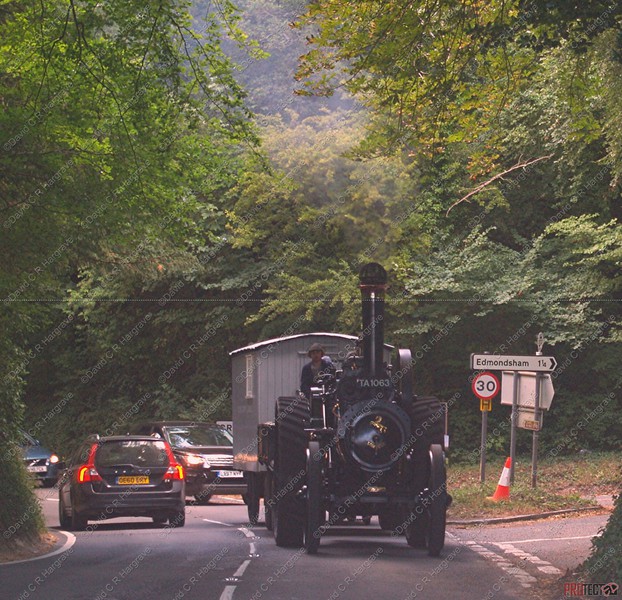 An engine with history that will be at the GDSF, travelling by road from Bromham, where it was parked after the last rally it attended. It set off at first light from Bromham, via Tilshead, Shrewton, Berwick St James through Wilton via the A36 and over the racecourse to Coombe Bissett and onto the A354 to Dorset.