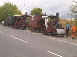 The engine has recently been to Welland and South Cerney, it left the Gloucester steam rally Sunday afternoon and travelled by road towards Dorset. The crew, Cory