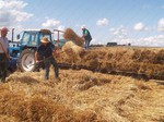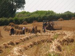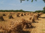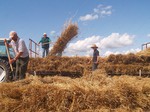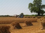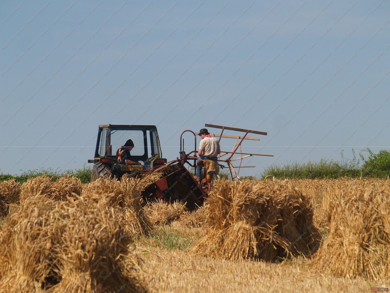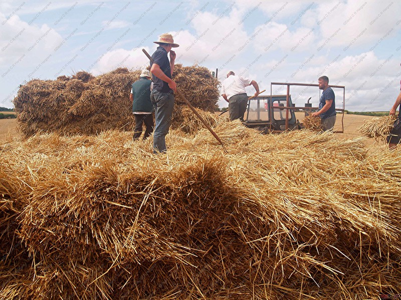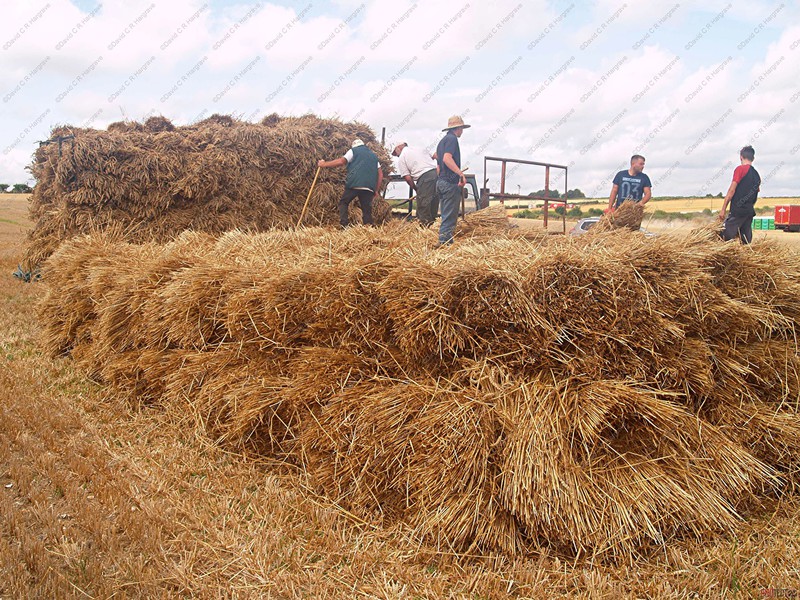 However the 23, 000 sheaves of corn, cut with a binder on site started a few weeks ago and the ricks are now being created ready for threshing in the work