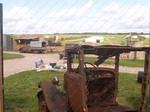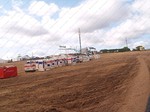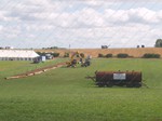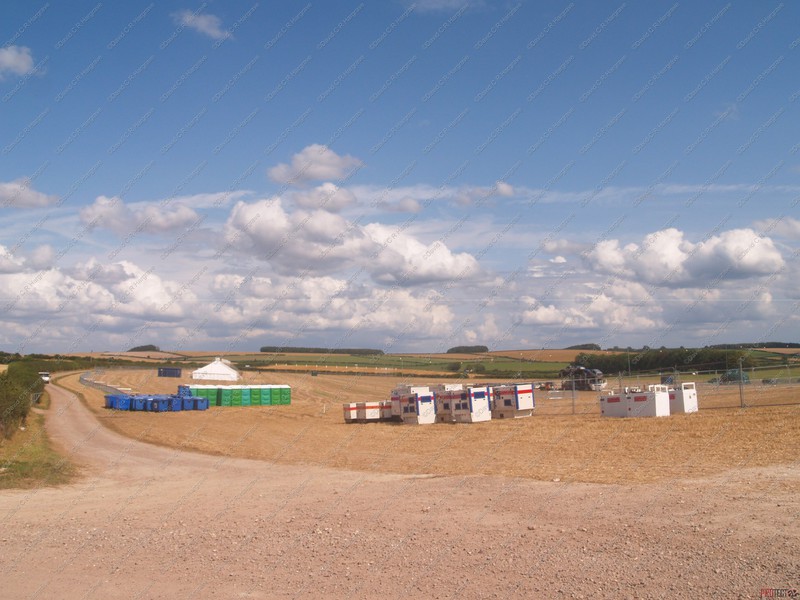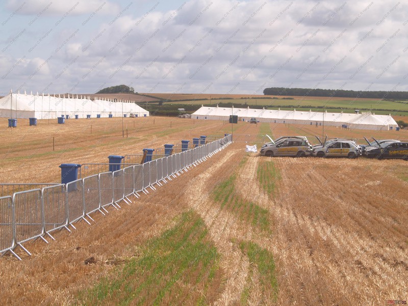 Under the watchful eye of Megan the Guard Dog, the Ken Fox and Family Wall of Death is being constructed. Speaking to Ken, he was glad of the rain, as the top of