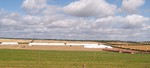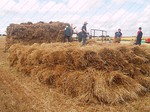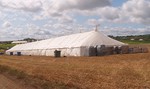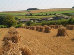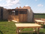 There are several large corn ricks, built on site in the work areas, using the 23,000 sheaves or stooks of corn grown and harvested on site using a binder.