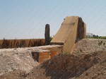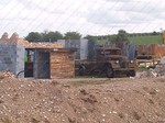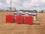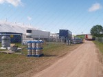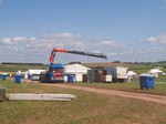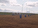 Massive water storage bags, distribution pumps and stand pipes at various locations.