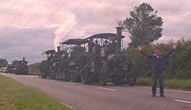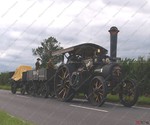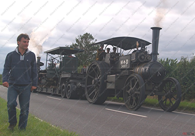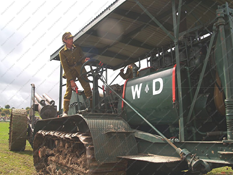 Two McLaren locomotives pulled a Pickfords trailer carrying a 1914 WW1 Holt 75 HP Gun Tractor, which was originally used to tow a
