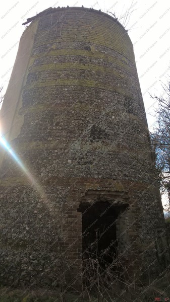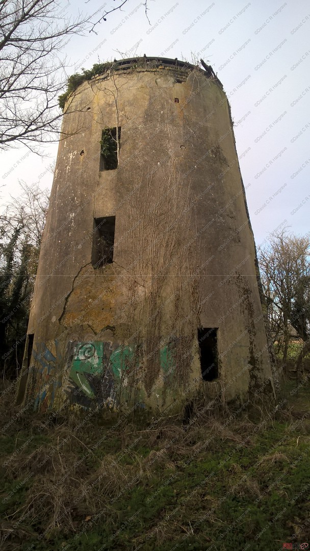 Tower of truncated conical form. Four floors, now removed. Opposed doors on north and south. Windows 2 to each floor set diagonally above ground