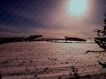 the road having been ploughed and snow had been blown out of the road into the surrounding fields. This road is not a place to be when it snows, it is very high up and exposed to the elements,